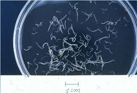 Haarwormen zijn, zoals de naam reeds zegt, zo dun als een haar en niet met het blote oog te zien.