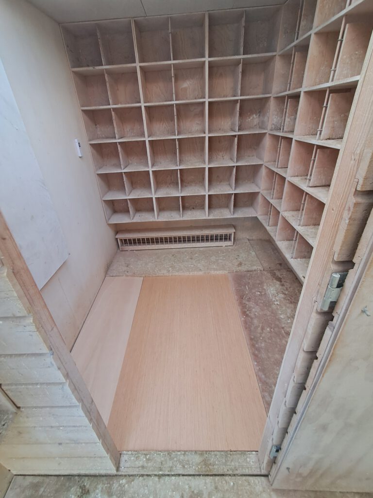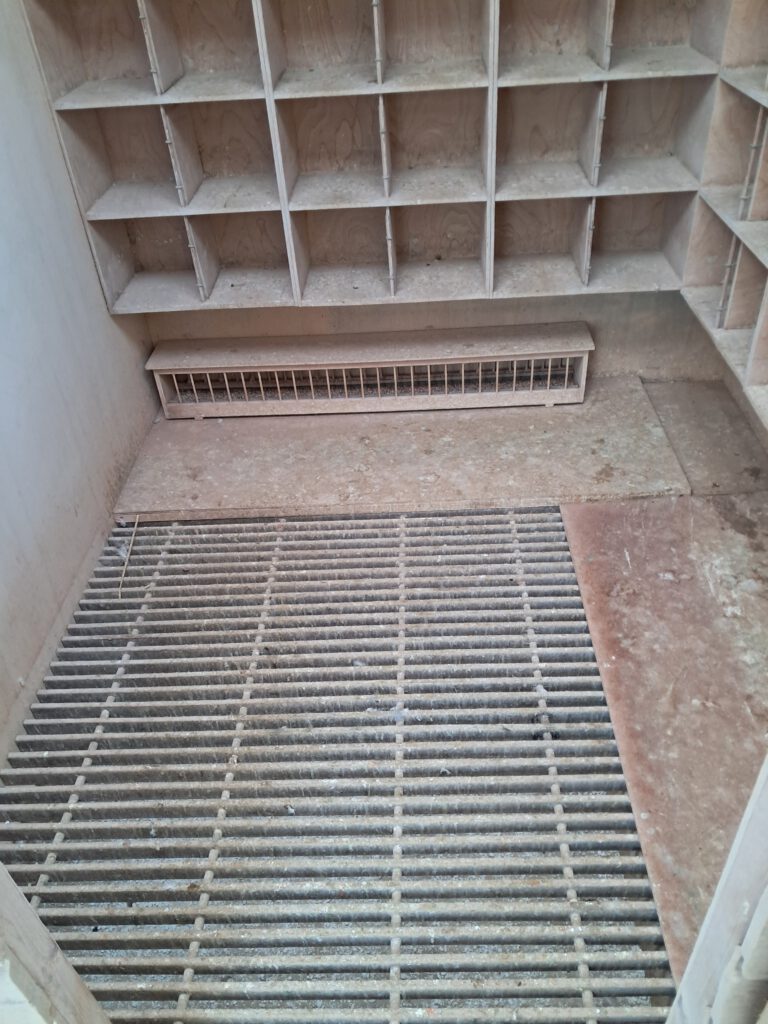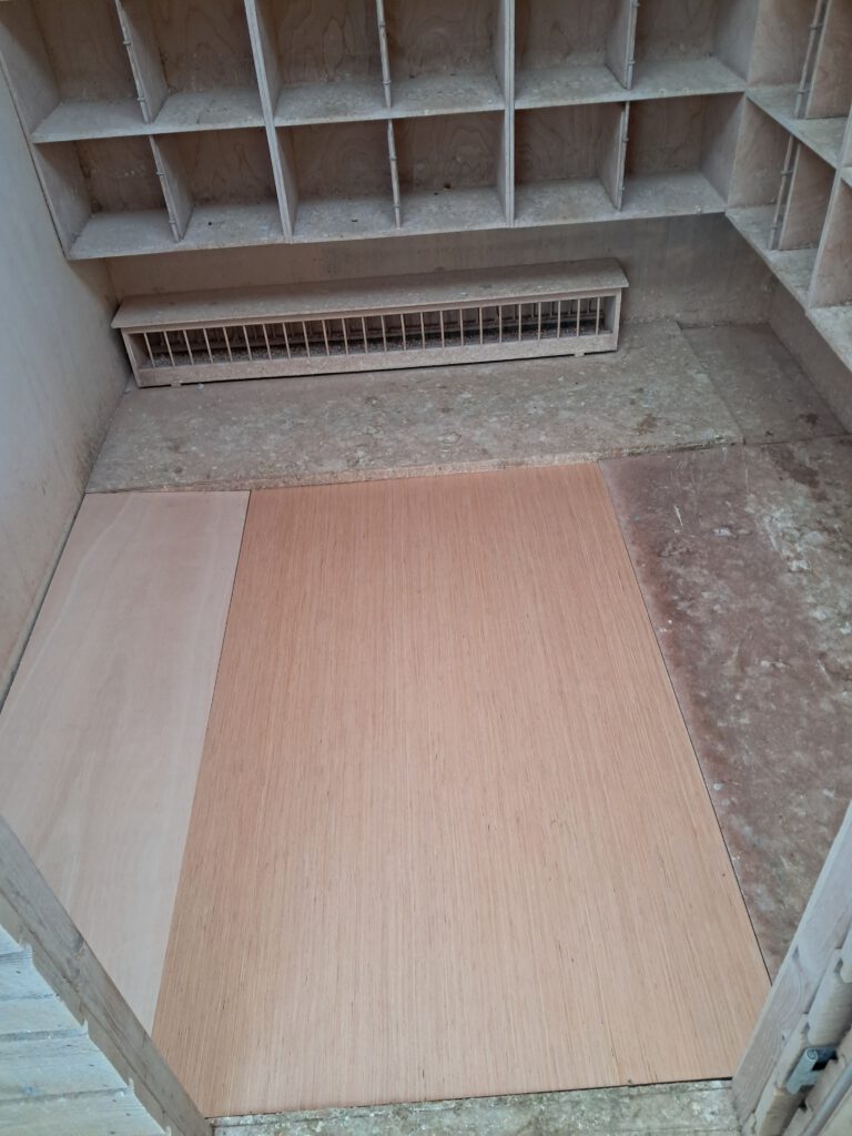 Planning was om de roosters te verwijderen en er voor in de plaats een houten vloer door vloerplaten op de balkjes te leggen.