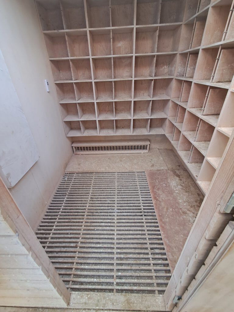 Ik maak nu de hokken dagelijks schoon en met het voeren gedeeltelijk. In het vliegseizoen wordt er twee keer per dag schoongemaakt. Nu kost het mij smorgens ruim een half uur werk met 1 leegstaande afdeling.
