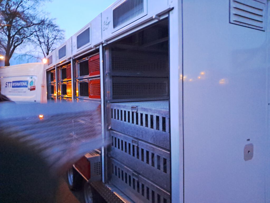 Een aanhanger met rolluiken en dus in vergelijk met de vaste CC5 aanhanger veel meer luchtgaten door de rolluiken. De begeleider had mooi op tijd gezien dat hij niet alles kon laden en deze oplossing bedacht. Geweldig, super mooi en vlot gedaan.