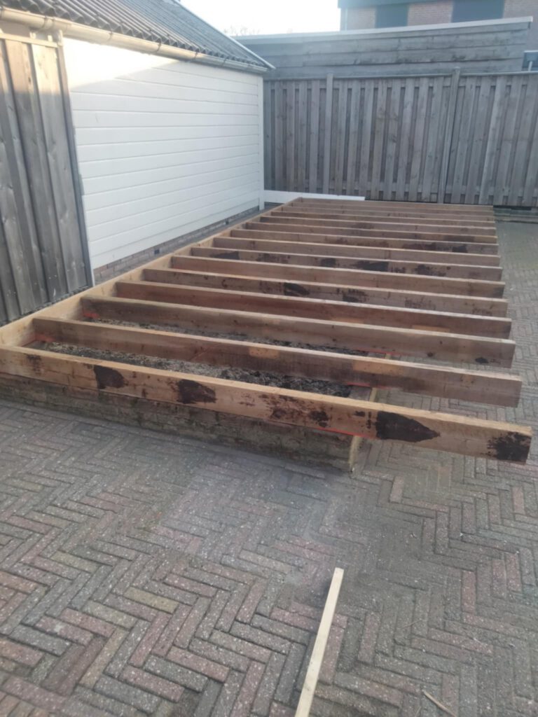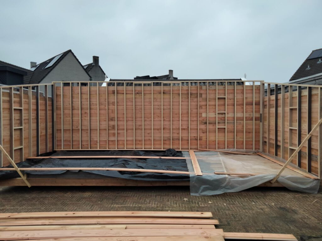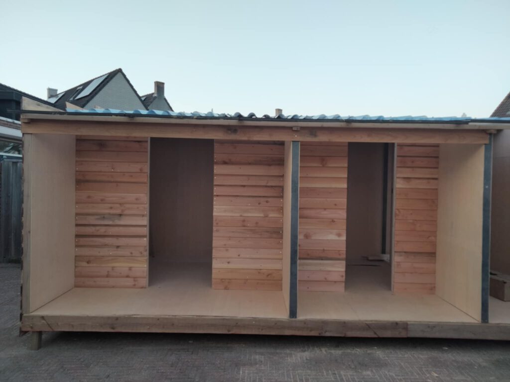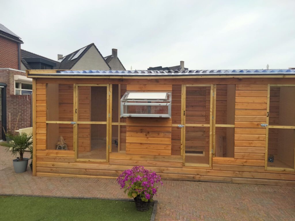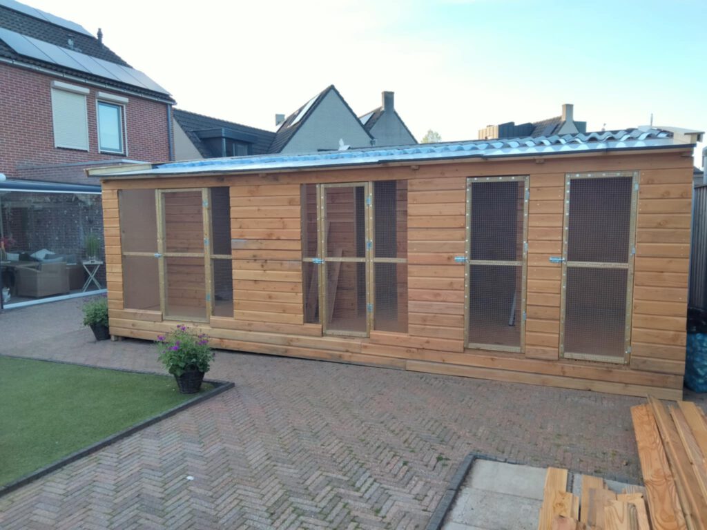 Aalt Sneller die zelf geen timmerman is, heeft het hok alleen gebouwd. Hij heeft 20 jaar gewerkt in de vleessector en is nu al 20 jaar conciërge op een basisschool. Onderstaand, zijn bouwfoto,s