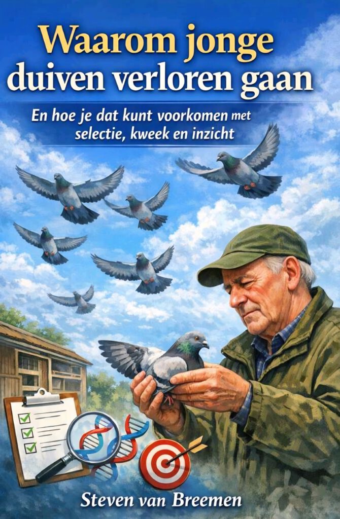 Het jaarlijks verlies van jonge duiven is geen toeval en geen onvermijdelijk onderdeel van de sport. Het is het gevolg van een samenhang van factoren — en dus ook van keuzes. In dit boek heb ik mijn inzichten en ervaringen, opgebouwd over meer dan 35 jaar intensief spelen met jonge duiven, samengebracht in één geheel. Niet als losse adviezen, maar als een systeem dat laat zien waar het werkelijk misgaat — en vooral hoe het anders kan.