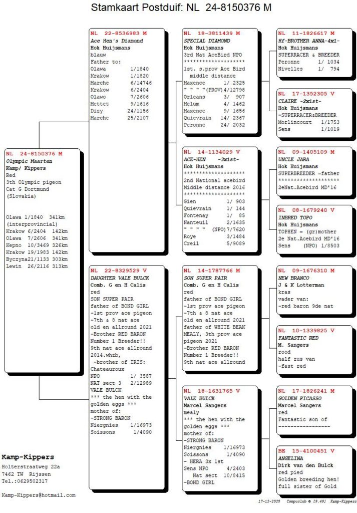 Gevolg de 3e, 5e en 7e Nationale Asduif bij de jaarlingen in Slowakije zijn 100% Kamp/Kippers duiven.