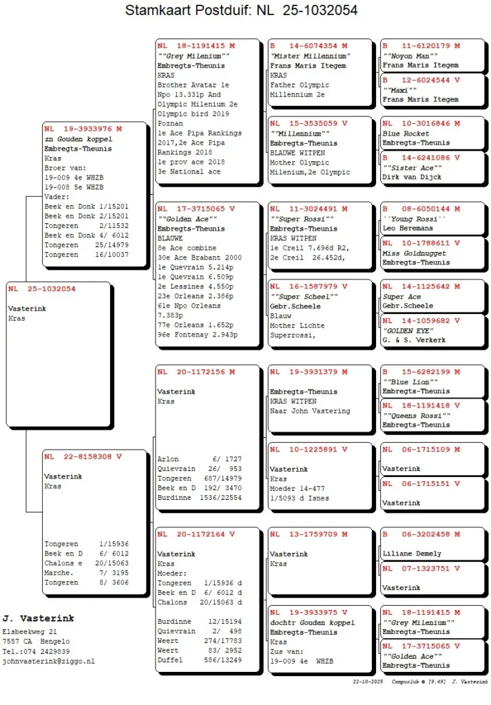 Er zat een doffer bij van John Vasterink uit Hengelo die ons geweldig aanstond. Dus ik heb samen met Sabine getracht deze doffer te kopen en we zijn verheugd dat het ons gelukt is. Onderstaand de stamkaart van de doffer.