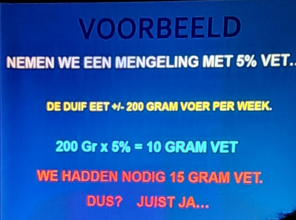 De bovenstaande afbeelding komt uit de spreekbeurt van Aidi eigenaar Eddy Noël, Ik hoef mij nog geen zorgen te maken dat mijn duiven te kort komen zoals in het bovenstaande wordt opgemerkt.
