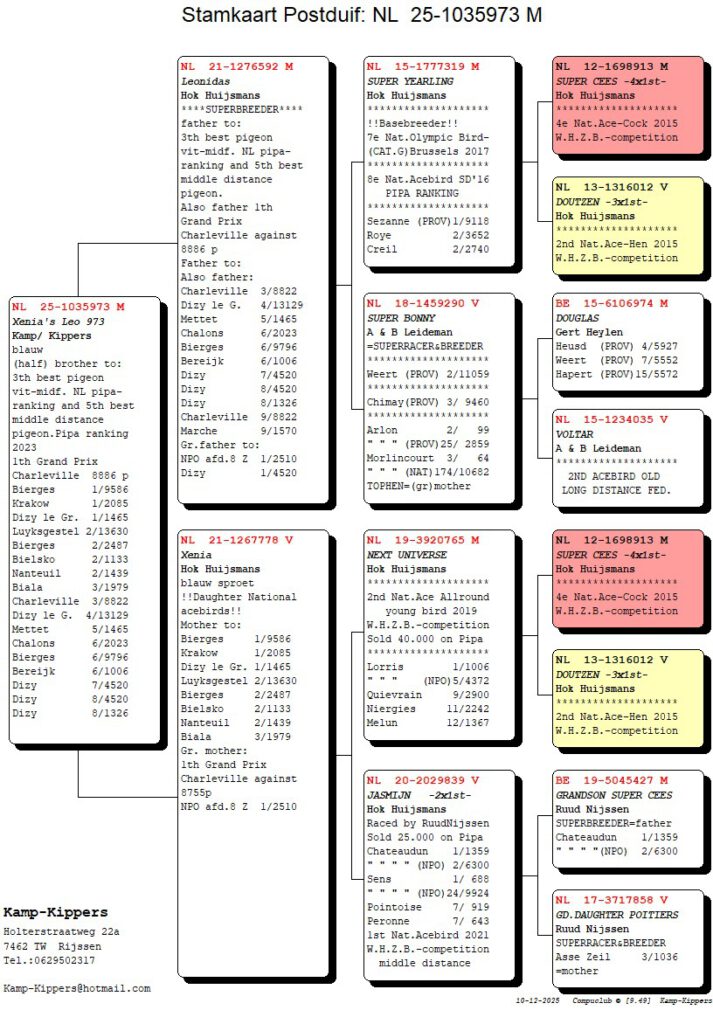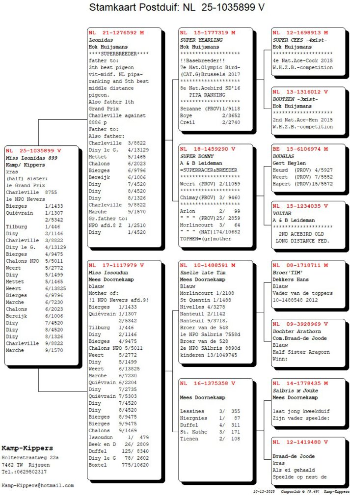 Om even terug te komen op goede duiven, kijkt u eens naar de onderstaande 3 stamkaarten van jongen die in de verkoop zitten, zo zie je ze zelden.