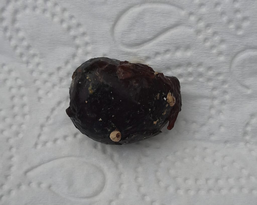 Bij Sabine heeft de duivin een aantal dagen later het onderstaande uitgescheiden.